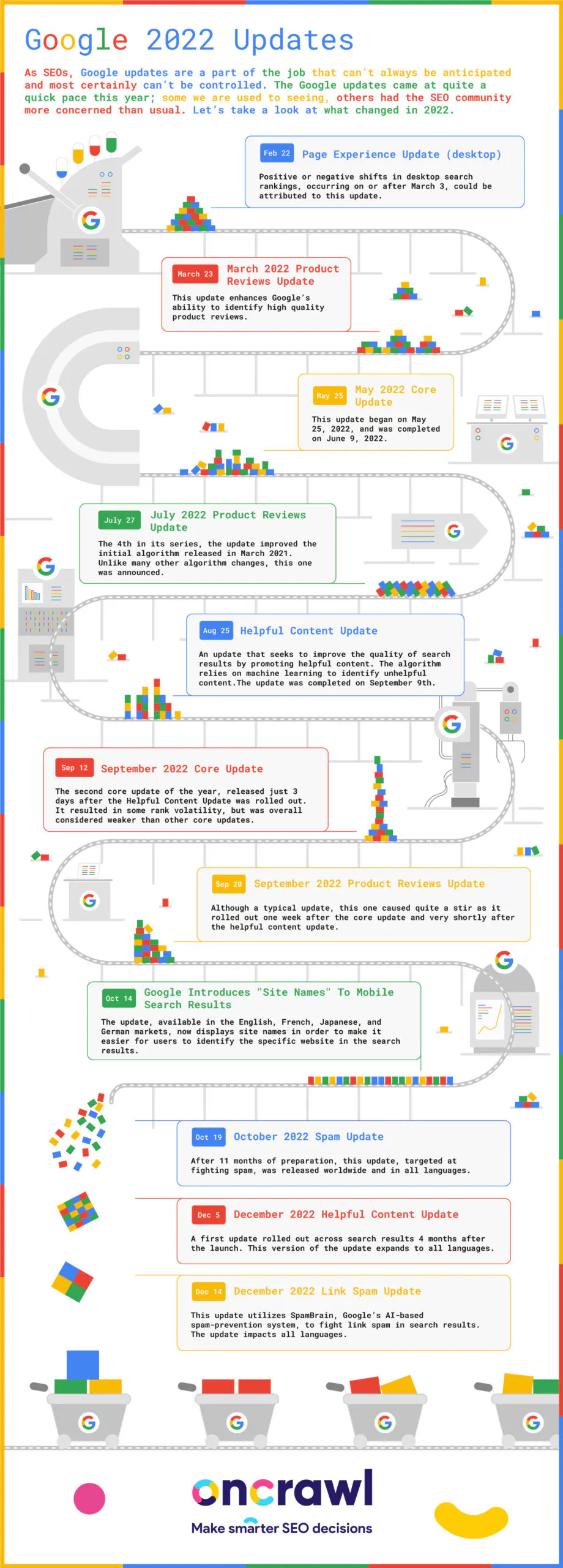OnCrawl shared a very detailed infographic that summarises all the algorithm updates of 2022.