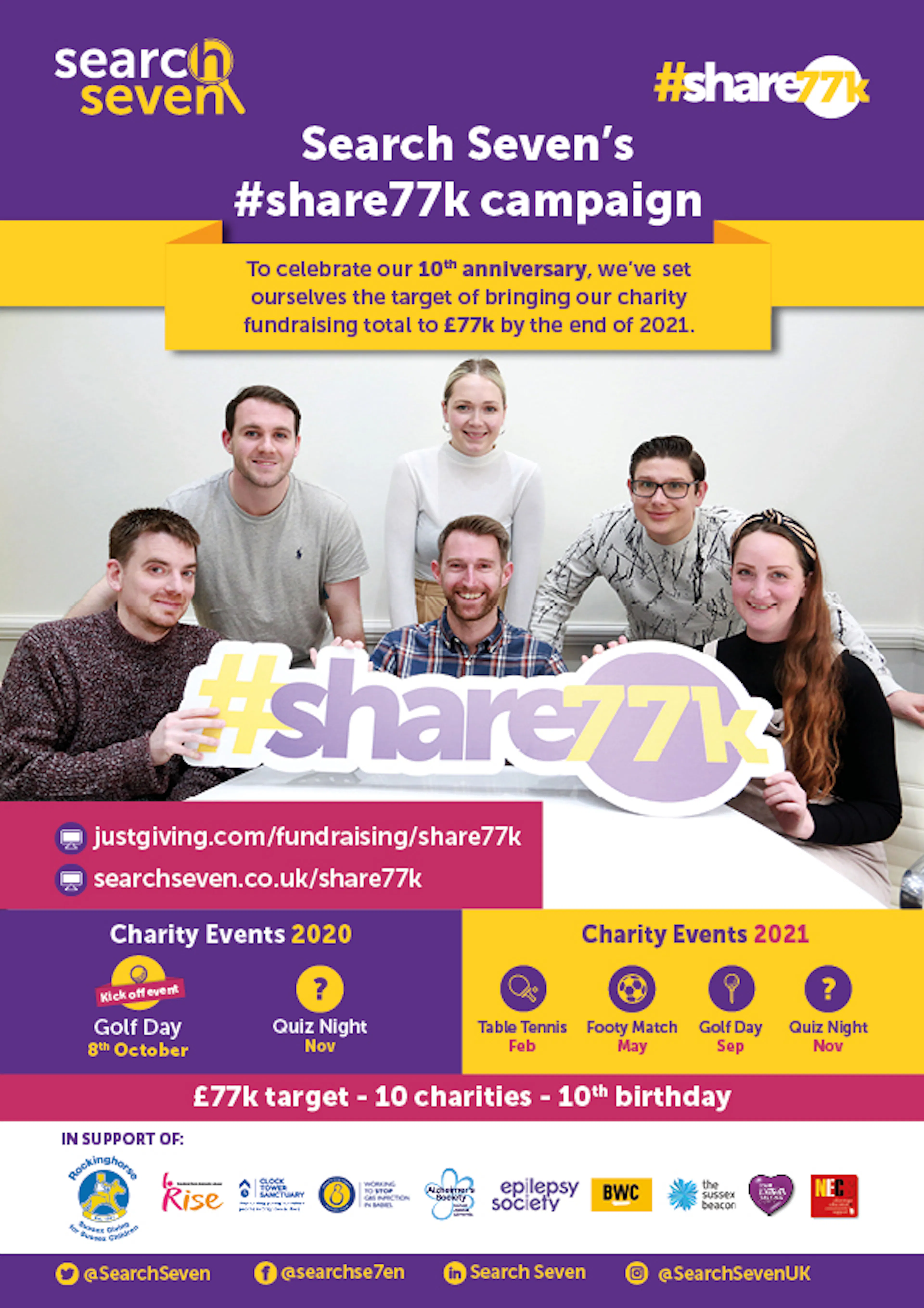 Search Seven announce six fundraising events for their #share77k campaign as they aim to reach £77,000 for charity!