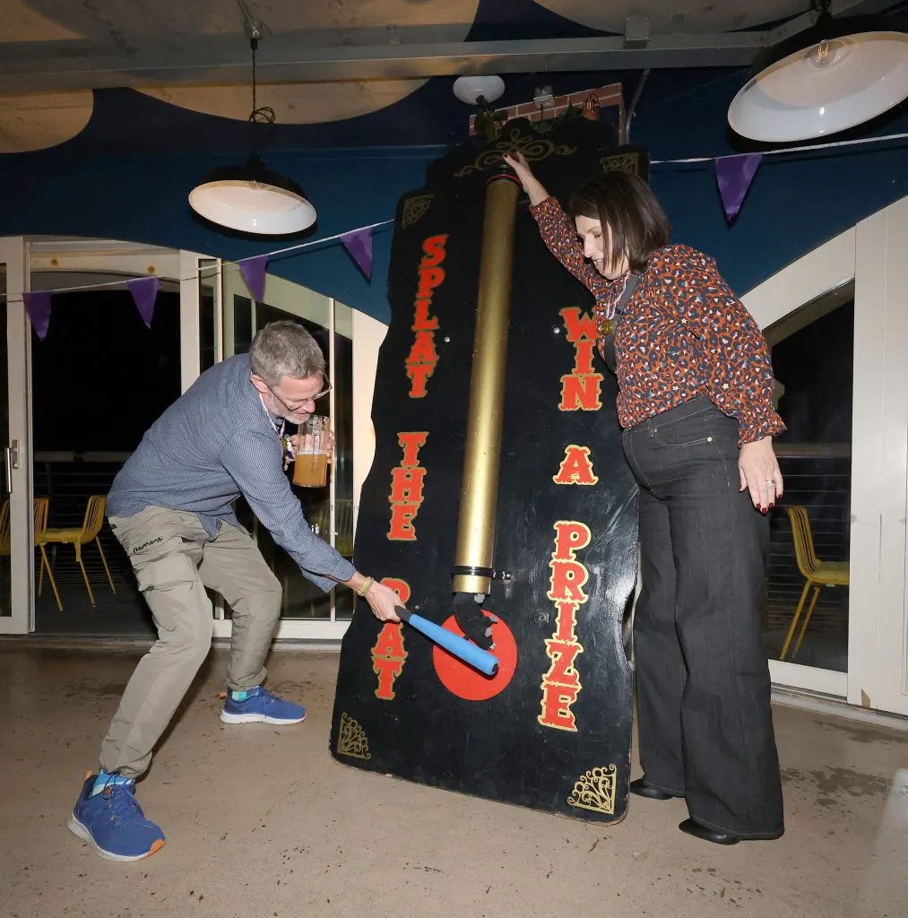 The bell rang at 7pm, and - after a rousing air-guitar solo from CEO Gavin Willis - we got started with a classic game of Heads and Tails, led by ‘Head Boy’ and headline sponsor Wayne Edwards at Wix Studio. A tense face-off resulted in victory for Maxine at Hive19 who walked away with the grand prize!